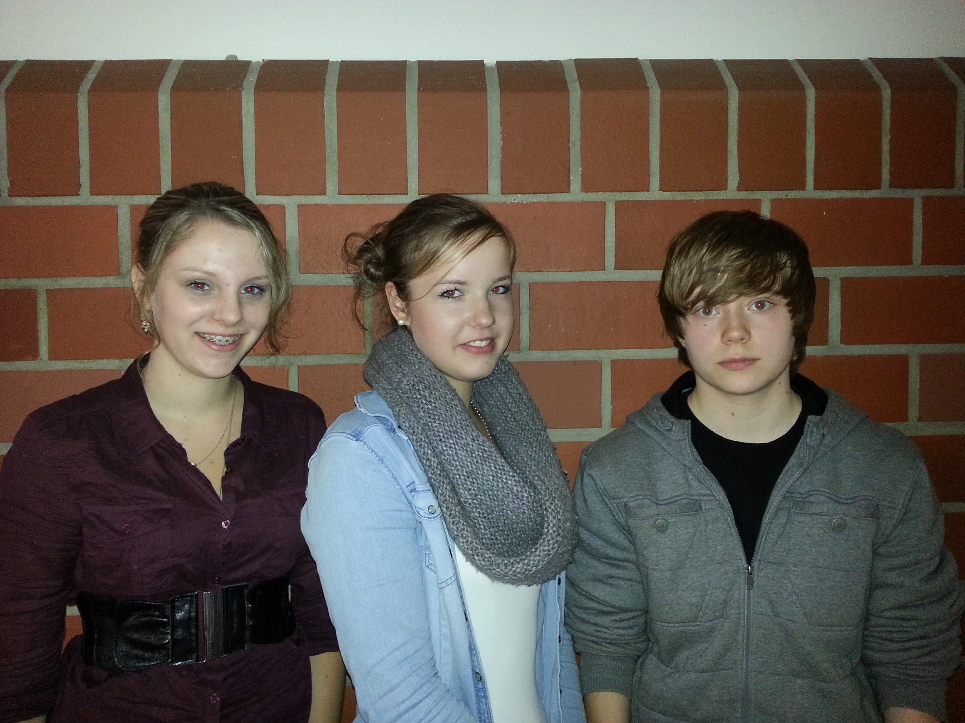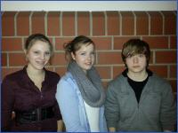 Im Rahmen des Deutschunterrichtes haben die Schüler des Deutsch E-Kurses (Jg.10) bei Herrn Schmidt an einem Kurzgeschichtenwettbewerb des A. Fritz Verlages teil genommen. Das Thema war "Ein Drachen im Rotlichtviertel". Die Schülerinnen Michelle Schulz, Mietje Weichelt und Janine Tubbesing (Bild, von links nach rechts) haben bei diesem Wettbewerb gewonnen. Ihre Kurzgeschichten werden nun in einer Anthologie veröffentlicht.