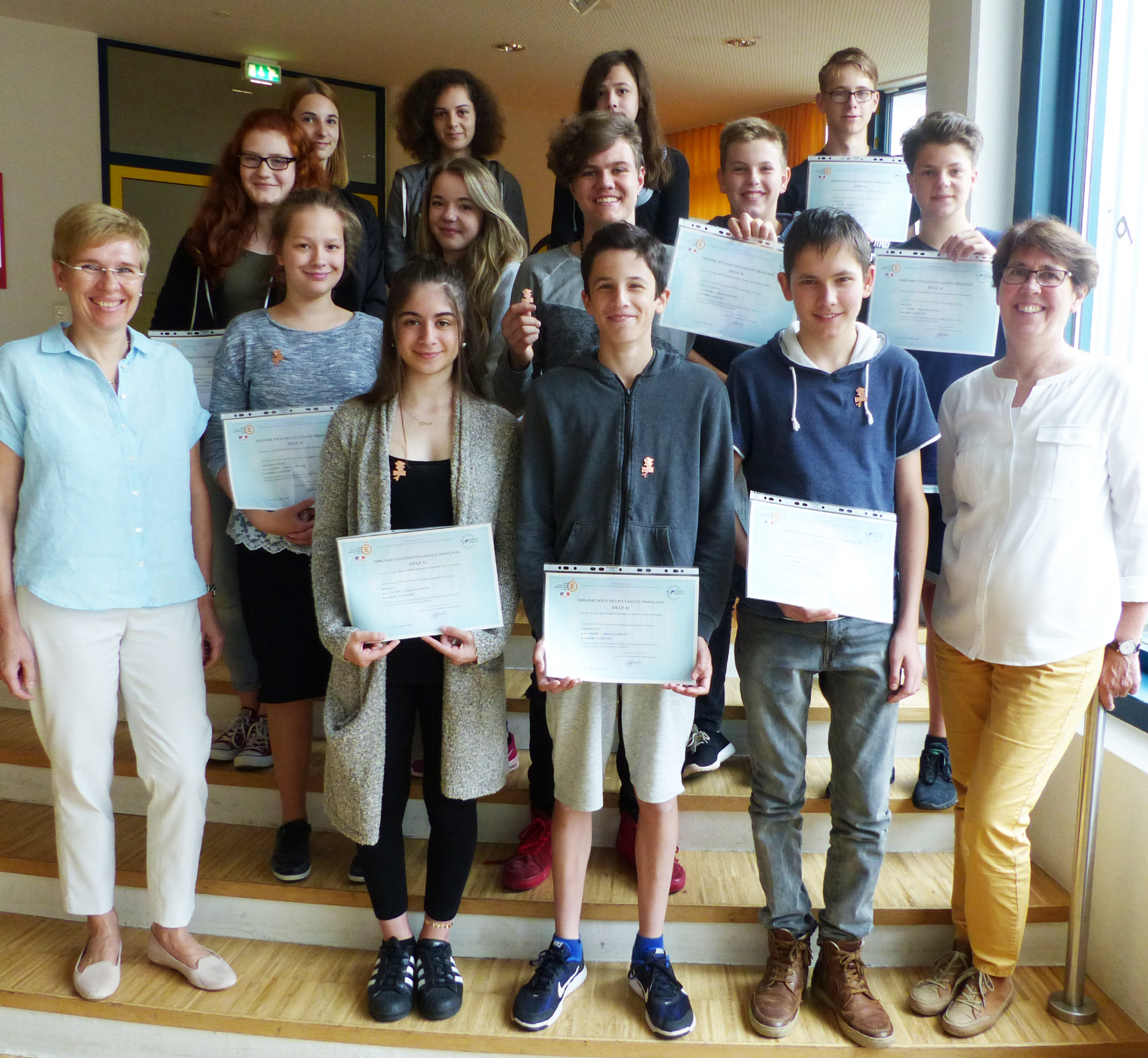 Kirchlengern. Auch in diesem Schuljahr haben wieder Schüler- und Schülerinnen des achten Jahrgangs der Erich Kästner-Gesamtschule Kirchlengern ihr Französischkönnen unter Beweis gestellt. Sie meisterten erfolgreich die mündliche und schriftliche Prüfung für das international anerkannte Sprachdiplom DELF, Niveaustufe A1. Als Anerkennung für ihre Leistung wurde ihnen nur das verdiente Diplom kurz vor den Sommerferien von der Schulleiterin Antje Stuke und der Französischlehrerin Angelika Rolfes überreicht. Folgende dreizehn Schülerinnen und Schüler bestanden die Prüfungen: