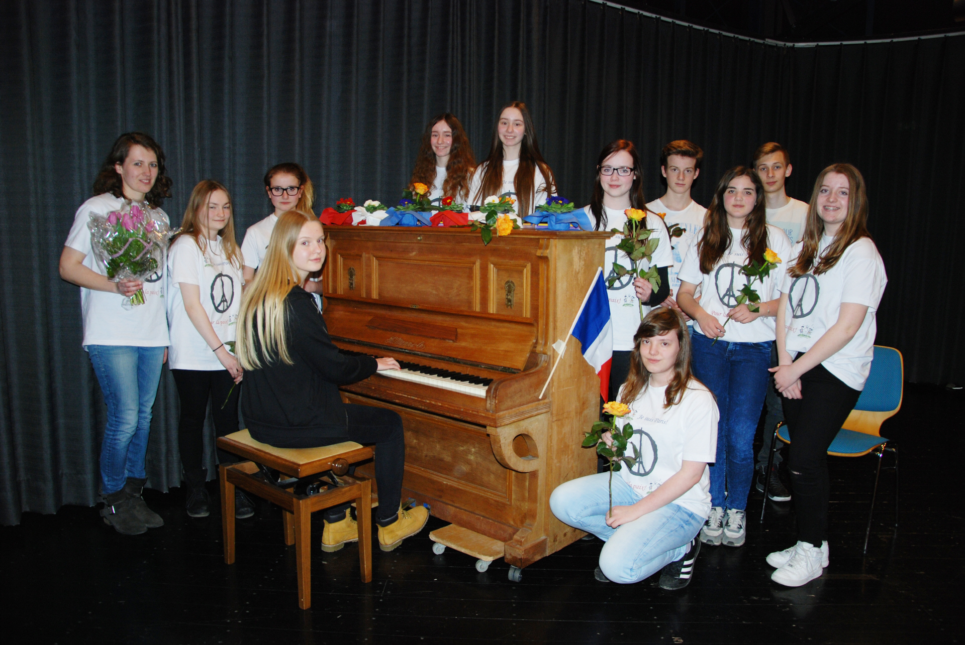 Die Schülerinnen arbeiteten monatelang überwiegend in ihrer Freizeit an diesem Video-Projekt: Johanna Buchholz (Autorin, Schauspielerin, Filmschnitt und Kamera), Yasmin und Sophia Beckemeyer (Autorinnen, Textkorrektur und Schauspielerinnen), Larissa Semelka (Autorin, Dekorateurin; Schauspielerin und Kamera), Malen Blöbaum (Autorin, Schauspielerin –Hauptrolle- und Kamera), Jenny Esau (Autorin, Schauspielerin und Kamera), Marie von Bargen (Autorin, Schauspielerin und Kamera), Nicole Wittich (Autorin und Schauspielerin), Mike Derksen (Schauspieler und Kamera) und Julian Stade (Schauspieler und Kamera). Jetzt wurde es zum ersten Mal bei einem „französischen Abend“ der Öffentlichkeit präsentiert. Musikalisch unterstützt wurde die Gruppe „Team 9F“ von Angelina Barabanov am Klavier. Mit viel Liebe zum Detail wurde das Forum der Gesamtschule in den französischen Farben geschmückt. Nach der Präsentation wurden typisch französische Gerichte dem begeisterten Publikum gereicht. Schulleiterin Antje Stuke ist begeistert: „Eine rundum gelungene Veranstaltung! Nicht nur der Abend, sondern auch ganz besonders das große Engagement für das Projekt.“