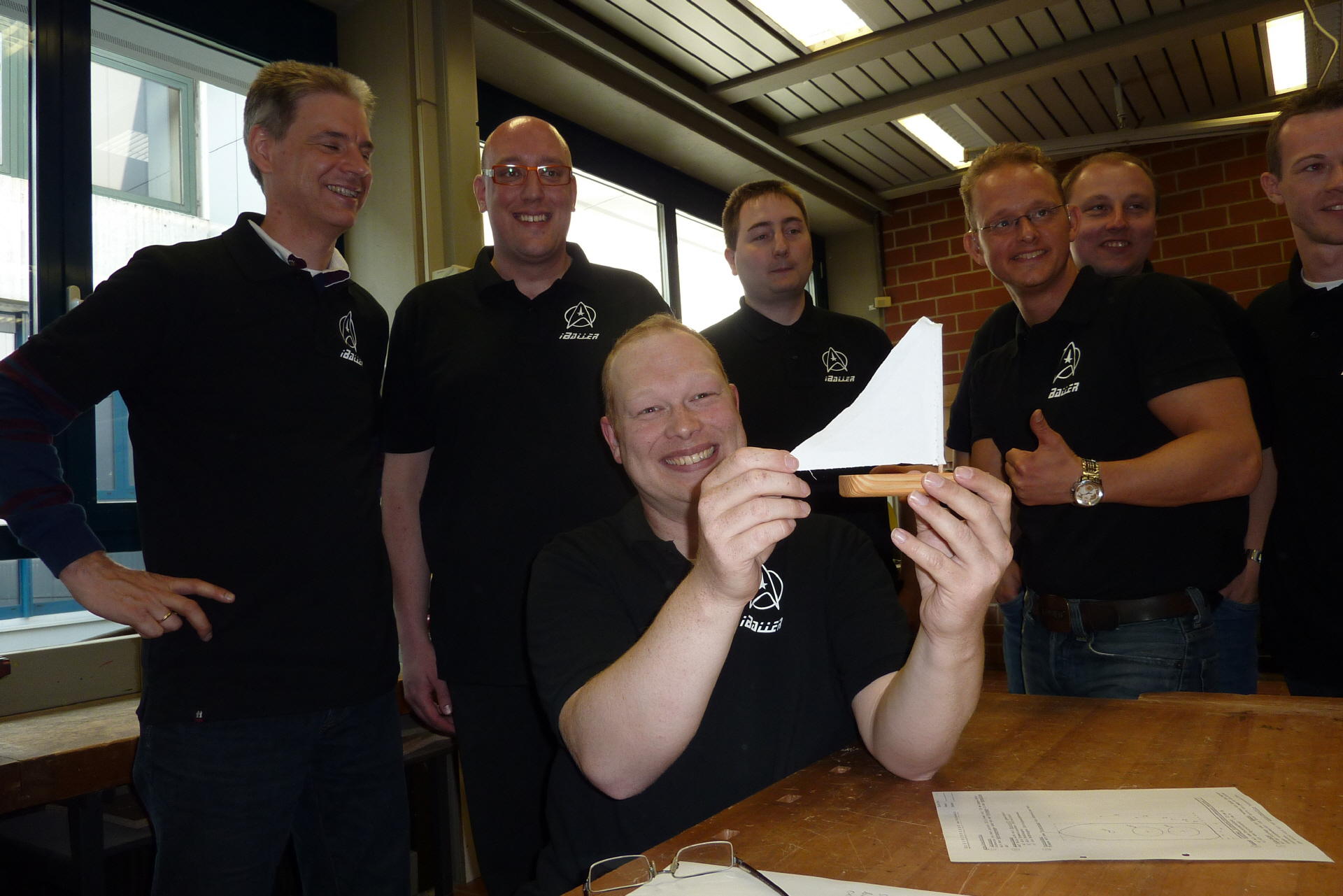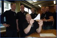 Seit mehr als fünf Stunden waren sie schon unterwegs mit Bollerwagen, Getränken und was man so braucht, als sie gegen 18.00 Uhr an der EKG in Kirchlengern eintrafen. Marco Fuhrmann feierte mit seinen Freunden Junggesellenabschied. Tobias – Marcos Bruder – hatte alles nach dem Motto „Back to the Roots“ organisiert. Marco sollte noch einmal alle wichtigen Stationen seiner Kindheit in Kirchlengern aufsuchen: Kindergarten, Grundschule, Kirche und jetzt zum Schluss die Erich Kästner- Gesamtschule. „Als diese Schule 1989 gegründet wurde, gehörte Marco zum ersten Einschulungsjahrgang. Hier hat er auch 1998 Abitur gemacht.“ erinnert sich Friedhelm Blöbaum, Abteilungsleiter und ehemaliger Techniklehrer an seinen Schüler. Inzwischen lebt Marco seit über zehn Jahren in Bayern, wo er in leitender Position als IT-Fachmann die Sammlungen der staatlichen Museen in München betreut. „Trotzdem ist sein Kontakt nach Kirchlengern nie abgerissen.“, betont sein ehemaliger Schulkamerad Lars Bienek. Beide hatten vor mehr als 18 Jahren die Werkzeugsammlung der Technikräume verwaltet und fanden sich sofort wieder zurecht, als Herr Blöbaum Türen und Schränke aufgeschlossen hatte. Unter den kritischen Augen seiner Begleiter und seines ehemaligen Lehrers hatte Marco die letzte Aufgabe seines Junggesellenabschlusses zu bewältigen: Als Bestandteil des Bohrmaschinenführerscheins war ein Schiffchen aus Fichtenholz herzustellen. Messen, Anreißen, Bohren, Raspeln, Schleifen und zum Schluss die Oberflächenbearbeitung waren allerdings kein Problem. „Gelernt ist eben gelernt!“, war der anerkennede Kommentar der aufmerksamen Beobachter. Ein origineller Junggesellenabschied, an dem alle Beteiligten sichtlich viel Spaß gehabt hatten, ging zu Ende. „Spätestens im Juni 2014 sehen wir uns wieder.“ versicherte Lars Bienek. „Dann feiern wir den 25sten Geburtstag unserer Erich Kästner- Gesamtschule!“