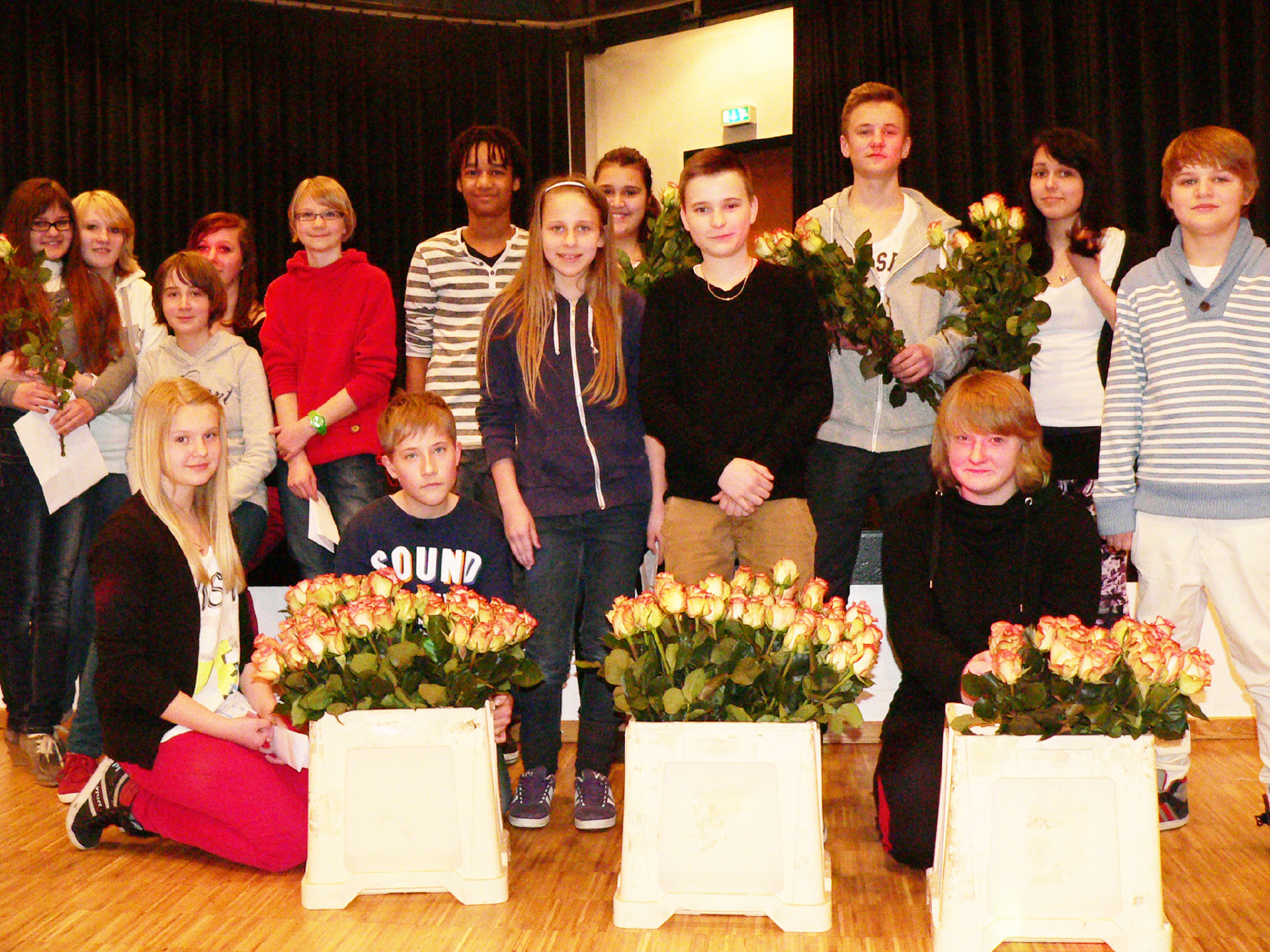Rosenaktion Am 10.04.2013 konnten die Schüler wieder ihre Freunde mit Rosen beschenken. Insgesamt wurden über 300 Rosen von Schülern an ihre Mitschüler verteilt.