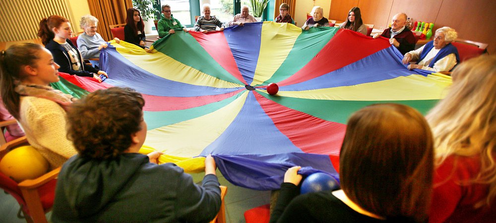 "Die AG ist verpflichtend für ein Schuljahr, wenn sich die Schüler dazu angemeldet haben. Von 14.30 bis 15.45 Uhr kommen sie immer montags hierher, um mit den Senioren zu basteln, zu spielen, mit ihnen spazieren zu gehen, oder einfach auch mal nur zum Unterhalten", sagt Lehrerin Ute Färber, die die AG zusammen mit Friedhelm Blöbaum betreut. Manchmal seien die Jugendlichen auch zwischendurch am Wochenende dort.