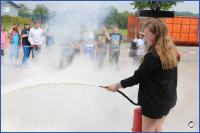 "An einer dritten Station können die Schüler die Wasserabgabe durch Strahlrohre üben", erläutert Klaus Westerholz, Löschgruppenführer der Feuerwehr Kirchlengern-Mitte. "Zudem gibt es im Innern der Schule drei Theorie-Stationen. Dort erklären wir zum Beispiel das Brandverhalten von verschiedenen Baustoffen oder zeigen auf, wie die Schutzausrüstung der Feuerwehrleute funktioniert", so Westerholz.