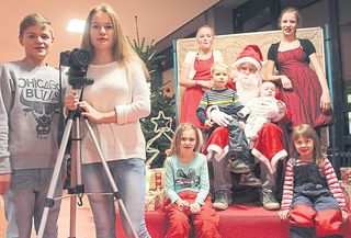 Philip Windmann und und Milena Hafner boten für einen Euro Erinnerungsfotos mit dem Weihnachtsmann und seinen beiden Elfen (Michelle Löwen und Jenny Krause) an. Die ersten glücklichen Kinder die auf seinem Schoß Platz nehmen durften, waren der kleine Aron (rechts auf dem Schoß), Anton Müller (links auf dem Schoß) Natalie Goepel (links) und Adriana Winter (rechts).